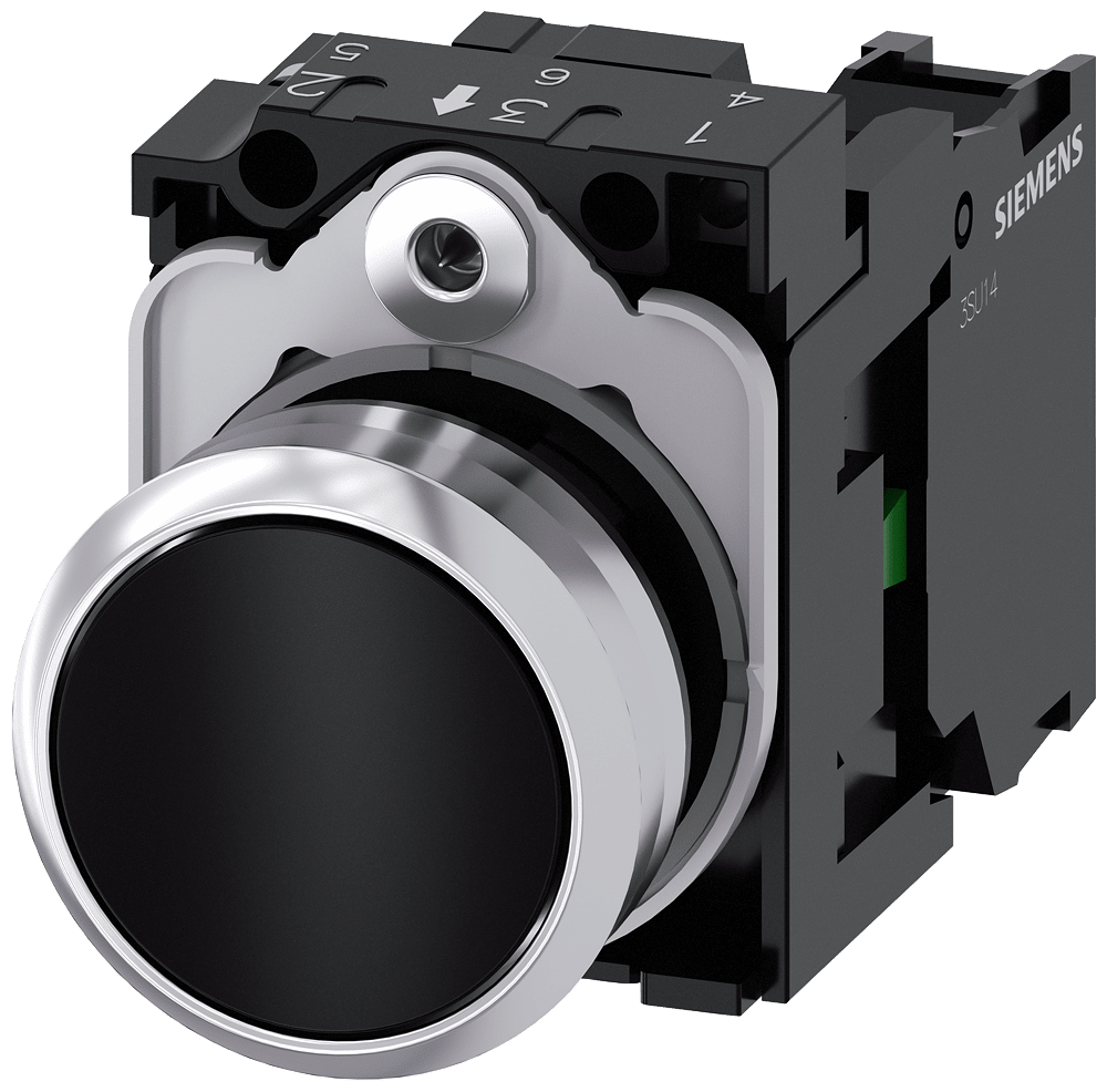 pulsante, 22 mm, rotondo, in metallo, lucido, nero, bottone, piatto, ad impulso, con supporto, 1 NO, morsetto a vite Pulsante SIRIUS ACT per la commutazione e il comando di utilizzatori elettrici. Siemens offre, sotto il nome commerciale SIRIUS ACT, un portfolio esclusivo di dispositivi di comando e segnalazione con omologazioni di prodotto per il mercato mondiale in tre moderne serie di design in robusto metallo puro e plastica pregiata.Linnovativo concetto di innesto a scatto semplifica talmente il montaggio che per eseguirlo basta una sola mano e non servono attrezzi speciali. Per i fori di montaggio sono sufficienti semplici fori non scanalati, essendo già integrata una protezione antirotazione al 100 %.Grazie al grado di protezione elevato i robustiapparecchi sono adatti allimpiego industriale e in ambiente esterno. È persino possibile la pulizia con getto ad alta pressione. Né polvere, né oli, né liscivia possono comprometterne il funzionamento affidabile.Oltre che con il cablaggio standard, gli apparecchi possono essere collegati al controllore anche tramite PROFINET, AS-Interface oppure IO-Link. Potete così ridurre il vostro onere di cablaggio, minimizzare le fonti di errore e ottenere maggiore flessibilità.Il configuratore online grafico supporta in modo confortevole la scelta e lordinazione di singoli apparecchi, pulsantiere e iscrizioni. È disponibile una documentazione completa (ad es. manuale, dati 3D, schema di collegamento). Esecuzioni fornibili: più colori, luminoso/non luminoso, con/senza iscrizione, comando permanente/ad impulso, diverse altezze di bottone e ghiera. Avvertenza: Apparecchio completo, fornitura incl. supporto e moduli. SIRIUS ACT - Performance in Action nel comando e nella segnalazione. Semplici da montare, altamente performanti, semplicemente perfetti.