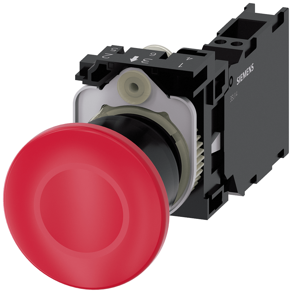 SIEMENS - SIE3SU11001BA203FA0 PULS.FUNGO MANT.TRAZ.ROSSO 1NO+1NC MOLL - 3SU11001BA203FA0