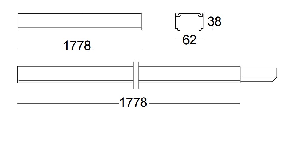 Struttura portante cablata per canali continui, idonea per: unità luminose 3F Linux L, 3FLinux D, 3F Linux DR, altri apparecchi o trasporto di linee elettriche.Base cablata in acciaio zincato a caldo e verniciata a base di poliestere in colore bianco,ottenute tramite rolling process.Resistenza alla nebbia salina pari a 500h e all'umidostato pari a 700h.Dimensioni: 1778x62 mm, altezza 38 mm. Peso 1,854 kg.Resistenza al filo incandescente 850°C.
