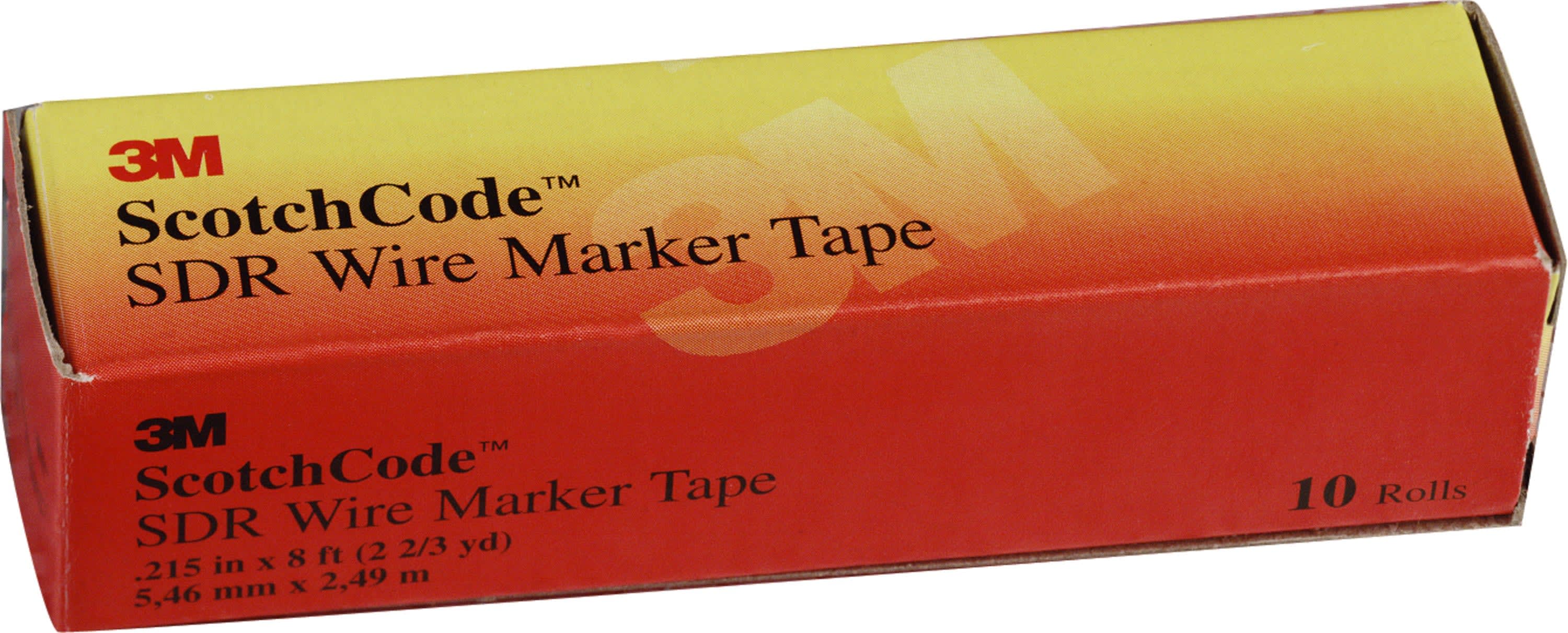 Nastri di ricambio 3M™ ScotchCode™ SDR-1_Blister contenente: 3 rotolini ricambio numero 7 A completamento dell'erogatore di nastro 3M™ Scotchcode™, il ricambio 3M™ Scotchcode™ (lettere e numeri) usa un sistema di adesione aggressivo. Con un supporto in pellicola di poliestere flessibile, il ricambio 3M™ Scotchcode™ (lettere e numeri) offre un nastro sottile e conformabile di estrema durata. La superficie liscia di questo nastro consente di rimuovere facilmente lo sporco, permettendo la leggibilità del testo anche dopo una lunga esposizione a un accumulo di contaminanti.