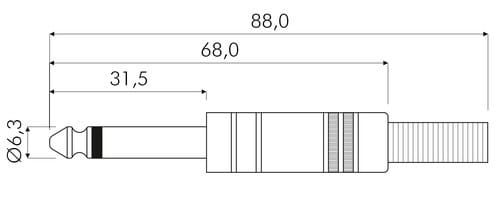 ** Caratteristiche Generali ** Genere: Spina Tipo Connettore: Jack Orientamento: Dritto Nr. Poli: 2 Canali: Mono ** Caratteristiche Meccaniche ** Materiale Corpo: Ottone nichelato Materiale Contatto: Ottone nichelato Tipo contatto: a saldare Montaggio connettore: volante Diametro Pin: 6.3mm