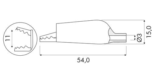 ** Caratteristiche Generali ** Tipo Connettore: Coccodrillo Colore: Rosso ** Caratteristiche Elettriche ** Corrente max: 5A Tensione max: 50V ** Caratteristiche Meccaniche ** Materiale Corpo: PVC Materiale Contatto: Acciaio nichelato Diametro cavo max:3mm