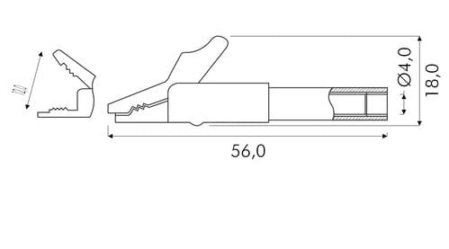 ** Caratteristiche Generali ** Tipo Connettore: Pinza Colore: Nero ** Caratteristiche Elettriche ** Corrente max: 15A Tensione max: 50V ** Caratteristiche Meccaniche ** Materiale Corpo: PA Materiale Contatto: Ottone nichelato Diametro cavo max: 4mm