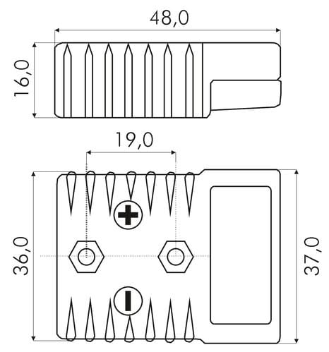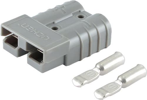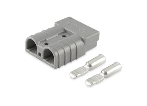** Caratteristiche Generali ** Genere: Spina Colore: Grigio Sezione AWG: 8 ** Caratteristiche Elettriche ** Corrente max: 50A Tensione max: 48V ** Caratteristiche Meccaniche ** Materiale Corpo: Plastica Sezione conduttori: 8mm²