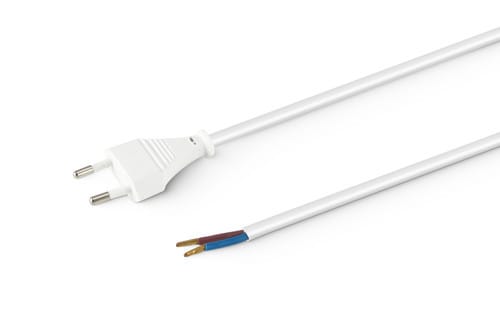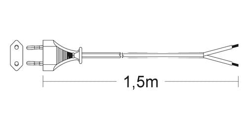 ** Caratteristiche ** Colore cavo: Bianco Lunghezza Cavo: 1.5m Formazione cavo: 2 x 0.75mm² Tipo Cavo: Piatto Portata: 2.5A Tensione massima: 250V Nome tecnico: H03WH2-F ** Connettore A ** Tipo Connettore A: Spina 2 poli Europa Dritto ** Connettore B** Tipo Connettore B: Cavo Spellato