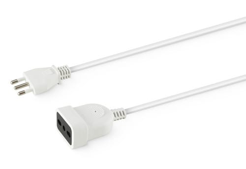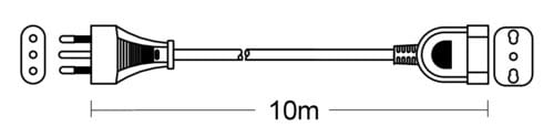 ** Caratteristiche ** Colore cavo: Bianco Lunghezza Cavo: 10m Formazione cavo: 3 x 1mm² Tipo Cavo: Tondo Portata: 16A Tensione massima: 250V Nome tecnico: H05VV-F ** Connettore A ** Tipo Connettore A: Spina Italia 16A ** Connettore B ** Tipo Connettore B: Presa Bipasso Dritto