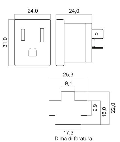 ALPHA ELETTRONICA SR - ALP23-14 PRESA DA PANN AMERICANA 3 POLI - 23-14