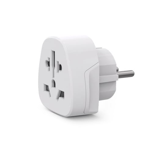 Adattatore universale da viaggio a spina Europa, utilizzabile in più di 150 paesi nel mondo per alimentare tutti i dispositivi elettronici. In particolare utilizzabile in Europa, Regno Unito, Stati Uniti e Australia. ** Caratteristiche Generali ** Colore: Bianco Tipo di prese: Mondo Tipo di spina: Europa/Tedesca - Diritta ** Caratteristiche Elettriche ** Tensione max: 250V Corrente max: 10A Potenza max collegabile: 2500W ** Caratteristiche Meccaniche ** Materiale corpo: Termoplastico rinforzato Materiale contatti: Lega di rame Sistemi sicurezza: Alveoli protetti da contatti accidentali