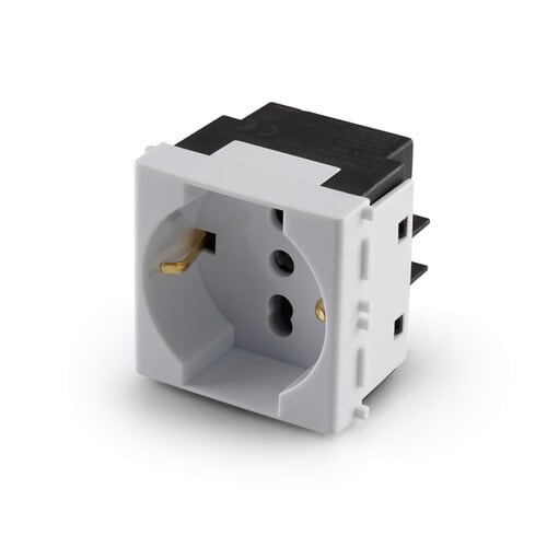 ** Caratteristiche Generali ** Tipologia: Presa Tipo di presa: Universale Italia P40 Colore: Bianco Portata: 16A@250Vac Tipo terminale: vite N. moduli: 2