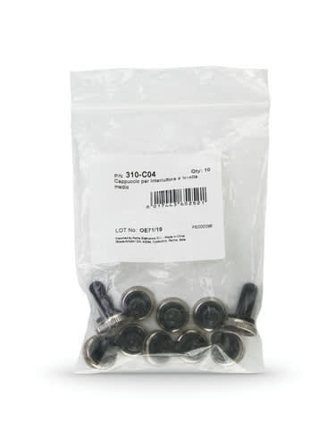 Cappuccio protettivo per interruttori a levetta medi ** Dati Tecnici ** Materiale ghiera: acciaio Finitura ghiera: zigrinata o-Ring: nessuno ** Caratteristiche Generali ** Grado di protezione: IP65