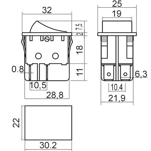 ALPHA ELETTRONICA SR - ALP320-012 INT NOR BILANCERE 2P ON/-/OFF FASTON 6.3 - 320-012