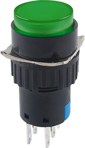** Caratteristiche Generali ** Attuatore: Pulsante Serigrafia: Nessuna Luminoso: no Colore: Verde Materiale attuatore: Plastica Tipi contatti: DPDT Portata: 3A@250Vac N. poli: 2 Stato dei contatti: ON/ON Tipo terminale: a saldare N. terminali: 6 Montaggio: Pannello con dado Foro fissaggio: ø15.5mm Grado di protezione: IP40