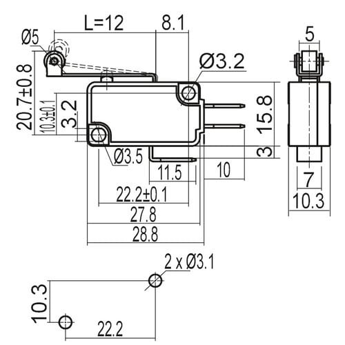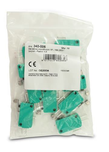 ** Caratteristiche Generali ** Attuatore: Microswitch Serigrafia: Nessuna Luminoso: no Materiale attuatore: Ottone nichelato Tipi contatti: SPDT Portata: 16A@250Vac, 10A@125Vac N. poli: 1 Stato dei contatti: (ON)/ON Tipo terminale: faston 4,8 N. terminali: 3 Note aggiuntive: con rotellina, L=12mm