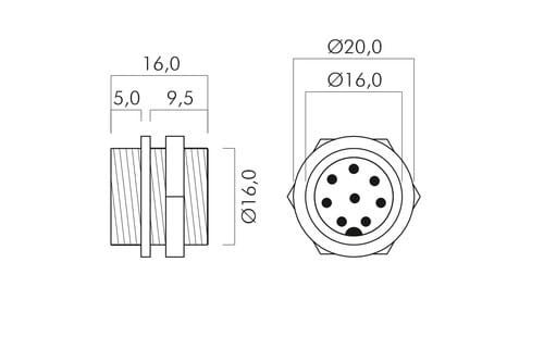 ** Caratteristiche Generali ** Genere: Spina Tipo Connettore: DIN Nr. Poli: 8 Adatto per: 40-22/40-23 ** Caratteristiche Meccaniche ** Materiale Corpo: Ottone nichelato Materiale Isolamento: Resina fenolica Tipo contatto: a saldare Montaggio connettore:pannello