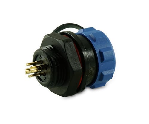 ** Caratteristiche Generali ** Genere: Presa Orientamento: Dritto Nr. Poli: 4 Serie Fornitore: SP13 ** Caratteristiche Elettriche ** Corrente max: 5A Tensione max: 250V ** Caratteristiche Meccaniche ** Materiale Corpo: Nylon Materiale Contatto: Lega dirame dorata Tipo contatto: a saldare Montaggio connettore: pannello Sezione conduttori: 0-2mm² Grado di protezione: IP68 ** Caratteristiche Termiche ** Temperatura di lavoro: -25/80°C