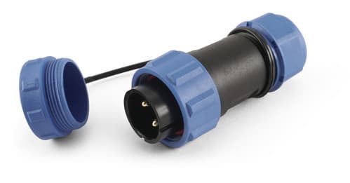 ** Caratteristiche Generali ** Genere: Spina Orientamento: Dritto Nr. Poli: 2 Serie Fornitore: SP21 ** Caratteristiche Elettriche ** Corrente max: 30A Tensione max: 500V ** Caratteristiche Meccaniche ** Materiale Corpo: Nylon Materiale Contatto: Lega di rame dorata Tipo contatto: a saldare Terminazione: a saldare Montaggio connettore: volante Sezione conduttori: 0-4mm² Diametro cavo min: 4.5mm Diametro cavo max: 7mm Grado di protezione: IP68 ** Caratteristiche Termiche ** Temperatura di lavoro: -25/80°C