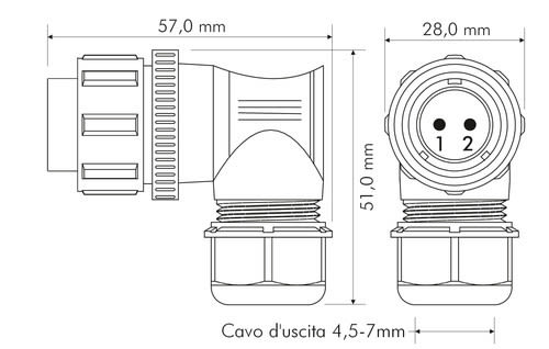 ALPHA ELETTRONICA SR - ALP44-54L CONNETTORE IP68 ANG. SP21 SPINA 2P30A - 44-54L