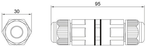 ** Caratteristiche Generali ** Genere: Morsetto Nr. Poli: 3 ** Caratteristiche Elettriche ** Corrente max: 32A Tensione max: 250V ** Caratteristiche Meccaniche ** Materiale Corpo: Poliamide Materiale Contatto: Rame Tipo contatto: a pressione Montaggio connettore: volante Sezione conduttori: 0.5-4mm² Grado di protezione: IP68