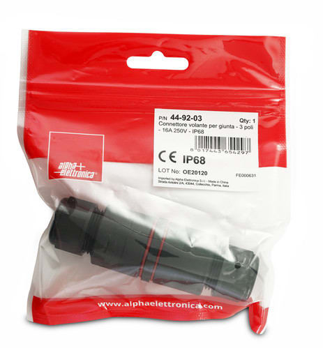ALPHA ELETTRONICA SR - ALP44-92-03 CONNETTORE/GIUNTACAVO 3P IP68 CON LEVE - 44-92-03
