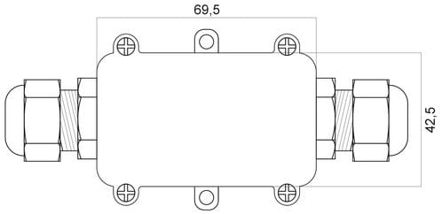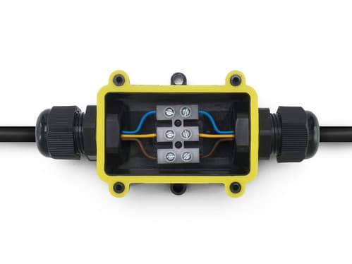 ** Caratteristiche Generali ** Genere: Morsetto Nr. Poli: 3 Ingressi e uscite: 1+1 Numero totale vie: 2 vie ** Caratteristiche Elettriche ** Corrente max: 24A Tensione max: 450V ** Caratteristiche Meccaniche ** Materiale Corpo: Poliammide PA6,6 Terminazione: morsetto 3 poli a vite Sezione conduttori: 0.5-2.5mm² Diametro cavo min: 9mm Diametro cavo max: 12mm Tipo Passacavo: 2 x M20 Grado di protezione: IP68 Formato Corpo: 2T Coperchio: Coperchio separato Guarnizioni preinstallate: 2 x M20 = (5-9 mm) Guarnizioni incluse non installate: 2 x M20 = (9-12 mm) ** Caratteristiche Termiche ** Temperatura di lavoro: -20/40°C