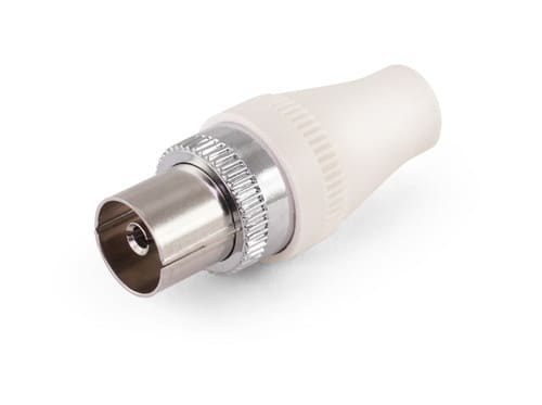 ** Caratteristiche Generali ** Genere: Presa Tipo Connettore: IEC Ø9,5mm Colore: Bianco Orientamento: Dritto Qualità: HQ Adatto per cavo RG: 59 Adatto per: Cavo coassiale ** Caratteristiche Elettriche ** Impedenza: 75ohm ** Caratteristiche Meccaniche ** Materiale Corpo: Plastico Tipo contatto: a vite Montaggio connettore: volante Diametro cavo nom: 6mm