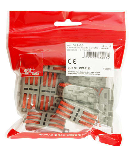 ALPHA ELETTRONICA SR - ALP542-23 Quick connector for cable clamp - 3 through poles - 6 clamps - 542-23