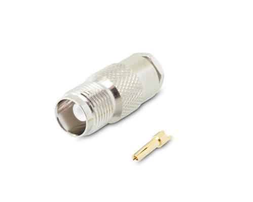 ** Caratteristiche Generali ** Genere: Presa Tipo Connettore: TNC Orientamento: Dritto Adatto per cavo RG: RG-58/U RG58A/U RG141A/U ** Caratteristiche Elettriche ** Impedenza: 50ohm ** Caratteristiche Meccaniche ** Materiale Corpo: Ottone nichelato Terminazione: serraggio a vite Montaggio connettore: volante