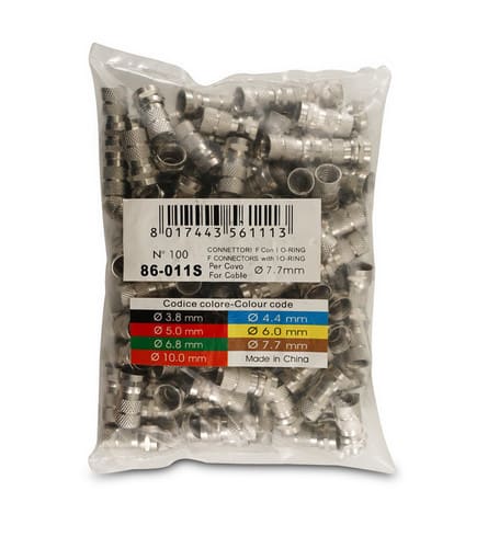 ** Caratteristiche Generali ** Genere: Spina Tipo Connettore: F Orientamento: Dritto ** Caratteristiche Meccaniche ** Materiale Corpo: Zama Terminazione: ad avvitare Diametro cavo nom: 7.7mm Dim. A: 5mm Dim. B: 7.3mm n. o-ring: 1