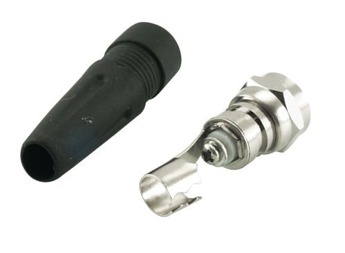 ** Caratteristiche Generali ** Genere: Spina Tipo Connettore: F Orientamento: Dritto ** Caratteristiche Meccaniche ** Materiale Corpo: Ottone nichelato Terminazione: a crimpare Montaggio connettore: volante