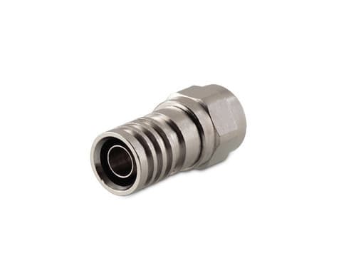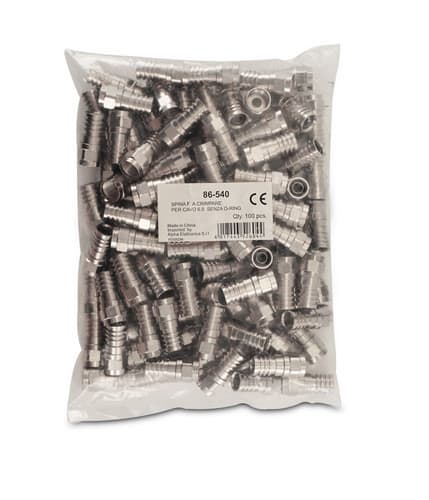 ** Caratteristiche Generali ** Genere: Spina Tipo Connettore: F Orientamento: Dritto Adatto per cavo RG: RG59 ** Caratteristiche Meccaniche ** Materiale Corpo: Ottone nichelato Terminazione: a crimpare Montaggio connettore: volante Diametro cavo nom: 6mm Dim. A: 4.4mm Dim. B: 7mm n. o-ring: 0