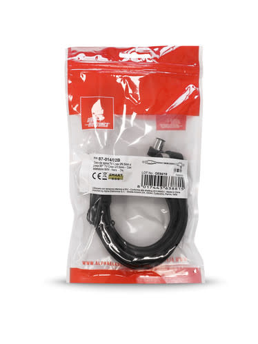 ALPHA ELETTRONICA SR - ALP87-014/02B Cable from Coax TV plug Ø9.5mm to 90 ° socket Coax TV Ø9.5mm - With adapter M / M - Black - 2m - 87-014/02B