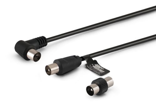 ** Caratteristiche ** Colore cavo: Nero Lunghezza Cavo: 2m Diametro cavo: ø5mm Tipo Cavo: Lineare, Tondo Guaina cavo: PVC Schermatura: Calza + foglio Materiale conduttori: Rame Puro Corpo connettori: Plastico Finitura contatto : Nichelato ** Connettore A ** Tipo Connettore A: Spina TV Coax ø9.5mm ** Connettore B ** Tipo Connettore B: Presa TV Coax ø9.5mm 90°