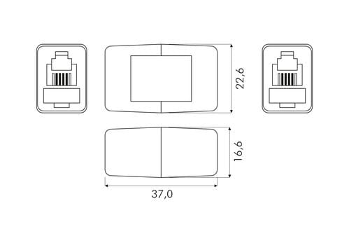 ** Caratteristiche Generali ** Genere: Adattatore Tipo Connettore A: Modulare 8P8C Genere A: Presa Tipo Connettore A: Presa Modulare 8P8C Tipo Connettore B: Modulare 8P8C Genere B: Presa Tipo Connettore B: Presa Modulare 8P8C ** Caratteristiche Meccaniche ** Materiale Corpo: Policarbonato Materiale Contatto: Bronzo fosforoso