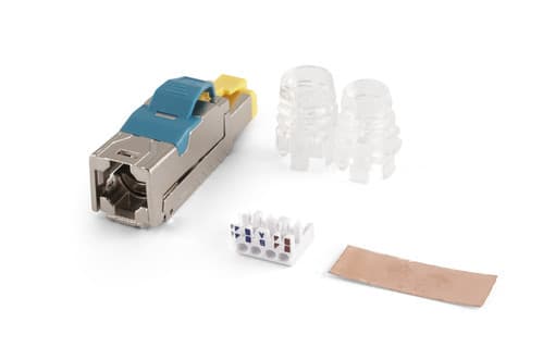 Diametro conduttori: 0,91-1,31mm ** Caratteristiche Generali ** Genere: Spina Categoria: CAT.6A Colore: Blu Adatto per tipo conduttore: Trefolo + Rigido Sezione AWG: AWG23-26 Tipo Clip: Standard ** Caratteristiche Elettriche ** Schermatura: si ** Caratteristiche Meccaniche ** Materiale Corpo: PC UL 94V-2 Materiale Contatto: Bronzo fosoforoso Placcatura contatti: Contatti dorati Tipo contatto: perforazione Terminazione: a pressione Montaggio connettore: volante Diametro cavo max: 8.5mm Inserti: 1 Placcatura: 50µm Formato Corpo: Standard ** Caratteristiche Termiche ** Classe di infiammabilità: UL94V-2
