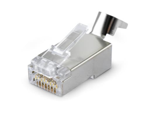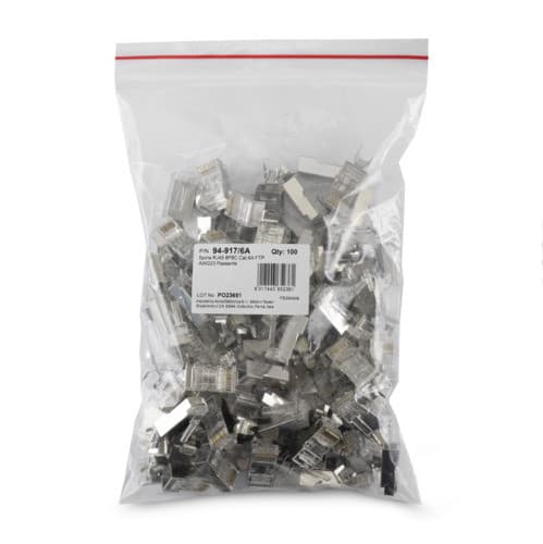 Connettore senza pettine interno Connettore con clip per schermatura Attenzione: necessario rimuove dalla pinza 98-155 il pin di terminazione ** Caratteristiche Generali ** Genere: Spina Categoria: CAT.6A Colore: Trasparente Nr. Poli: 8 Configurazione Poli: 8P8C Adatto per tipo conduttore: Trefolo + Rigido Sezione AWG: AWG23 Tipo Clip: Standard ** Caratteristiche Elettriche ** Schermatura: si ** Caratteristiche Meccaniche ** Materiale Corpo: PC UL 94V-2 Materiale Contatto: Bronzo fosforoso Placcatura contatti: Contatti dorati Tipo contatto: 3-prong Diametro conduttori max: 1.2mm Diametro cavo max: 6.8mm Inserti: 0 Placcatura: 50µm Formato Corpo: Standard Dim. A: 11.68mm Dim. B: 21.48mm ** Caratteristiche Termiche ** Classe di infiammabilità: UL94V-2