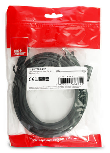 ALPHA ELETTRONICA SR - ALP95-706/05NB CAVO PATCH CAT5E 5M U/UTP NERO CU.POLY - 95-706/05NB