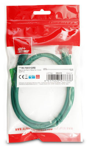 ALPHA ELETTRONICA SR - ALP95-708/01GRB CAVO PATCH CAT6 1M U/UTP VERDE CU PB - 95-708/01GRB