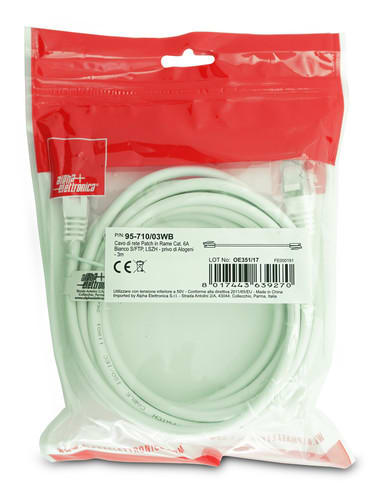 ALPHA ELETTRONICA SR - ALP95-710/03WB CAVO PATCH CAT6A 3M S/FTP LSZH BIANCO - 95-710/03WB