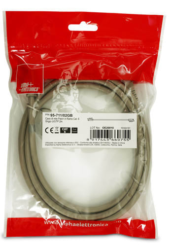 ALPHA ELETTRONICA SR - ALP95-711/02GB CAVO PATCH CAT6A 2M U/UTP GRIGIO CU PB - 95-711/02GB