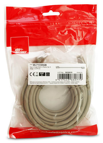 ALPHA ELETTRONICA SR - ALP95-711/05GB CAVO PATCH CAT6A 5M U/UTP GRIGIO CU PB - 95-711/05GB