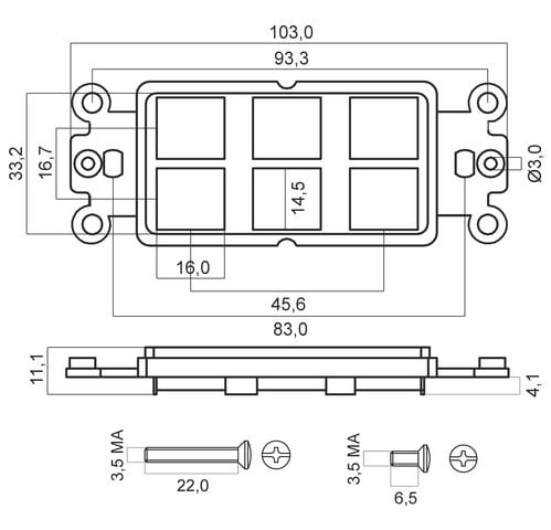 Supporto per frutti Keystone a 6 posizioni. ** Colore: ** Bianco Completo di Kit viti