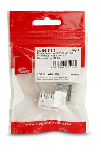 ALPHA ELETTRONICA SR - ALP96-116/1 PRESA KEYSTONE RJ45 CAT.6 UTP BIANCO - 96-116/1