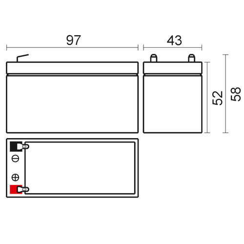 ** Caratteristiche Generali ** Adatto per: UPS Tecnologia: Piombo AGM ** Caratteristiche Elettriche ** Tensione: 12V Capacità: 1.3Ah ** Caratteristiche Meccaniche ** Dimensioni: 43mm x 97mm x 58mm Peso: 0.56Kg Connessioni: faston 4.8mm