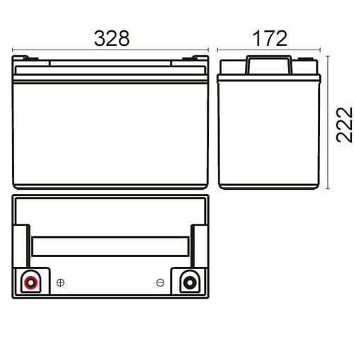 ** Caratteristiche Generali ** Adatto per: UPS Tecnologia: Piombo AGM ** Caratteristiche Elettriche ** Tensione: 12V Capacità: 100Ah ** Caratteristiche Meccaniche ** Dimensioni: 172mm x 328mm x 222mm Peso: 30Kg Connessioni: a vite M8