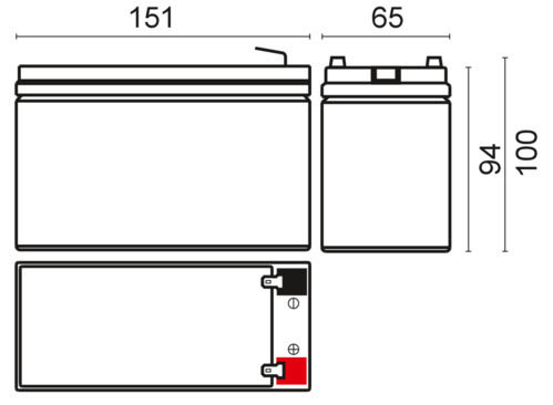 ** Caratteristiche Generali ** Adatto per: UPS Tecnologia: Piombo AGM ** Caratteristiche Elettriche ** Tensione: 12V Capacità: 9Ah Potenza (15min 1,67V/cella 25°C): 36W Corrente di carica massima: 2.7A Corrente di scarica massima: 90A ** Caratteristiche Meccaniche ** Dimensioni: 151mm x 65mm x 94mm Peso: 2.35Kg ± 5% Connessioni: faston 6.3mm Materiale contenitore: UL94 V0 Temperatura di immagazzinamento: -20 / 60°C Temperatura di lavoro: 0 / 50°C