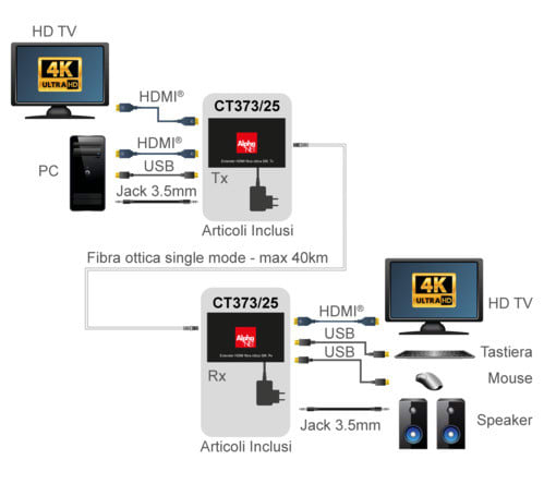 ALPHA ELETTRONICA SR - ALPCT373/25 EXTENDER 4K60HZ HDMI KVM FIBRA OTTICA - CT373/25