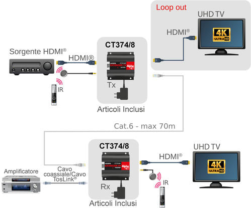 ALPHA ELETTRONICA SR - ALPCT374/8 EXTENDER HDMI2.0 4K 70M CON IR - CT374/8