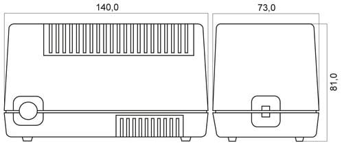 Autotrasformatore Non isolato Protezione Fusibile Classe: I ** Caratteristiche Generali ** Potenza: 100VA ** Ingresso ** Tensione d'ingresso: 230Vac Frequenza ingresso: 50Hz ** Uscita ** Tensione d'uscita (mod. batteria): 115Vac Corrente d'uscita: 870mA ** Protezioni ** Protezioni ingresso: fusibili a pannello ** Caratteristiche Meccaniche ** Dimensioni: 140mm x 73mm x 81mm ** Collegamenti ** Connessioni alimentazione ingresso: Spina Italia Connessioni alimentazione uscite: Presa America