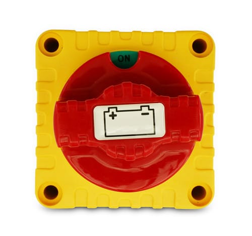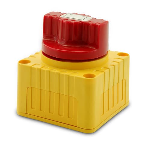 ** Descrizione ** Interruttore per disconnettere batterie 12/24V da carichi in corrente continua. Pomello rimovibile Dadi M10 in rame Dimensioni: 68x68x74mm Portata: 300A @12V carico continuo, 900A picco per 5 secondi. 150A @24V carico continuo, 450A picco per 5 secondi. ** Caratteristiche Generali ** Attuatore: Chiave Materiale attuatore: Plastica Stato dei contatti: ON/OFF Tensione massima: 12V Corrente massima: 300A