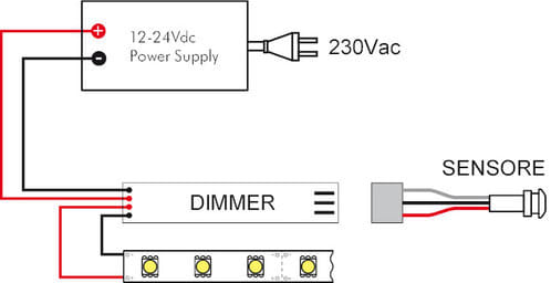 Il mini interruttore per nastri monocolore JO-CONTR-019/1 permette di accendere e spegnere la striscia led collegata un uscita semplicemente al passaggio della mano in prossimità del sensore. ** Caratteristiche Generali ** Funzione: Controller Adatto per: Monocolore ** Caratteristiche Elettriche ** Tipo regolazione: Tensione costante (CV) Tensione d'ingresso: 12/24V Tensione d'uscita: come ingresso Tipo di uscita: fili liberi Corrente/Ch: 3A n. canali: 1 Potenza nominale (12V): 36W Potenza nominale (24V): 72W ** Caratteristiche Meccaniche ** Lunghezza: 42mm Larghezza: 10mm Altezza: 10mm ** Caratteristiche Termiche ** Temp. di funzionamento: 0 / 40°C ** Attenzione ** Sensore non incluso nella confezione. Il controller deve essere utilizzato esclusivamente in abbinamento con un sensore correlato.